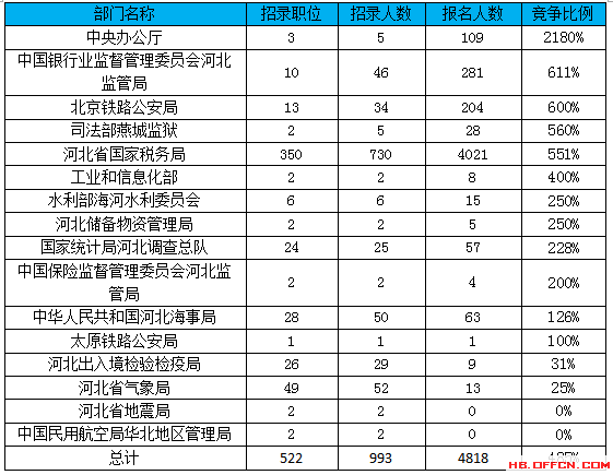 為幫助廣大考生更清晰的了解今日報名情況,河北中公教育整理了各部門審核通過人數(shù)以及競爭比例,供廣大考生參考: