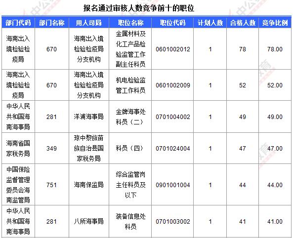 報(bào)名通過(guò)前十的職位具體信息如下: