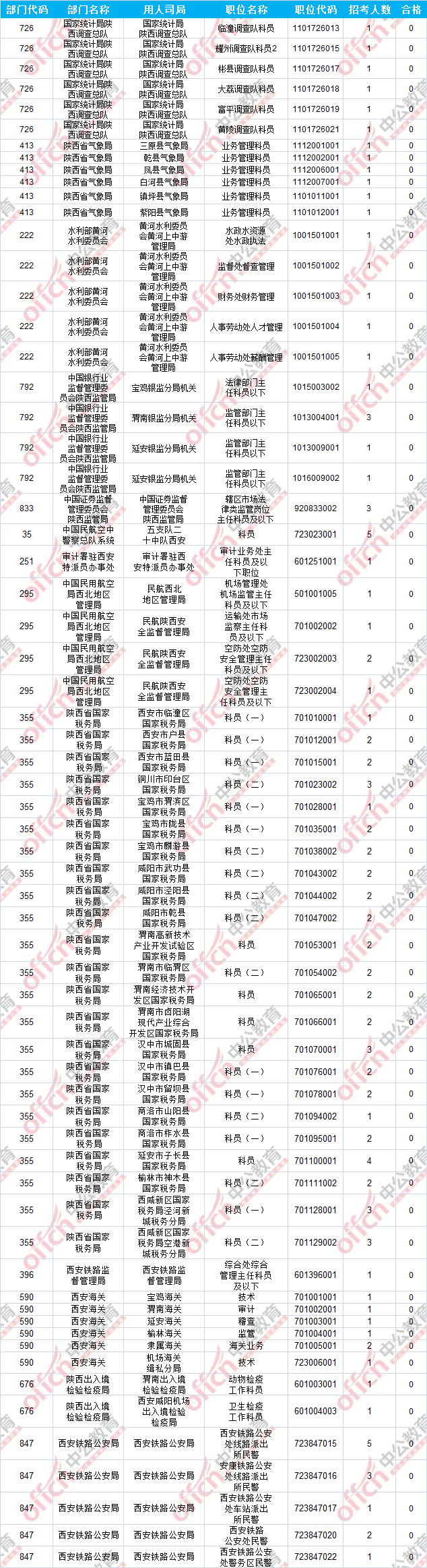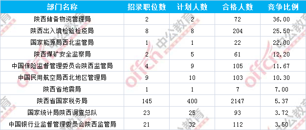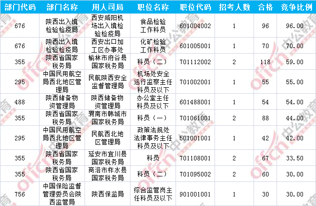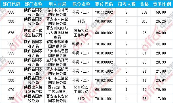 報(bào)名通過審核人數(shù)前十的職位主要集中在陜西省國(guó)家稅務(wù)局及陜西出入境檢驗(yàn)檢疫局兩大部門,具體信息如下: