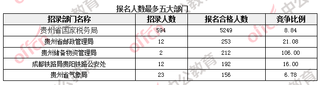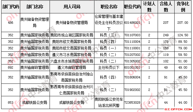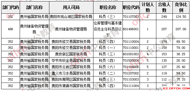 報(bào)名通過(guò)審核人數(shù)較多的職位主要集中在貴州省國(guó)家稅務(wù)局、貴州儲(chǔ)備物資管理局等部門,具體信息如下: