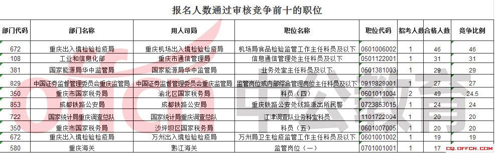 首日報名通過審核人數(shù)前十的職位相對前兩天已經(jīng)有很大的變化,具體信息如下: