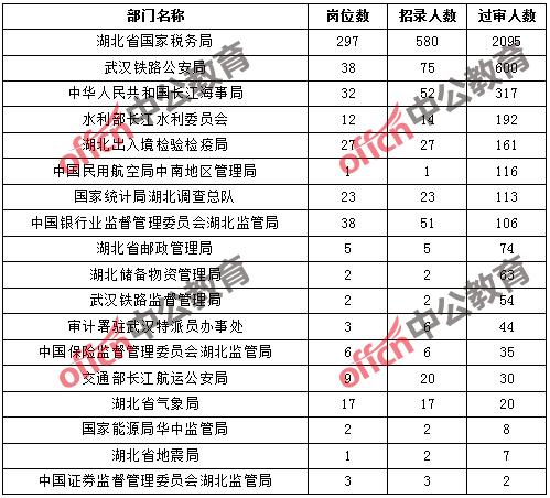 截止到10月17日16時,湖北地區(qū)各部門報考人數(shù)如下: