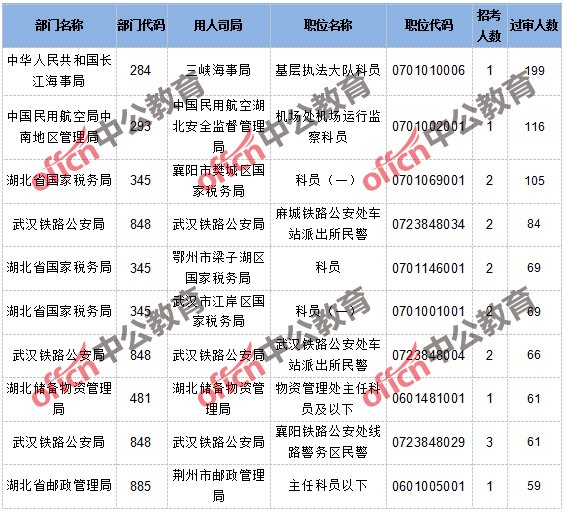 中國民航空中警察總隊系統(tǒng)、武漢海關(guān)、國家土地督察武漢局、無人通過審核。