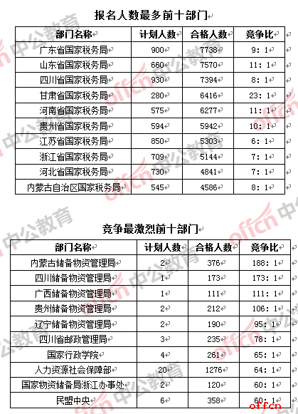 【截至18日8時(shí)】2017國(guó)考報(bào)名最熱部門(mén)物資管理局占6席