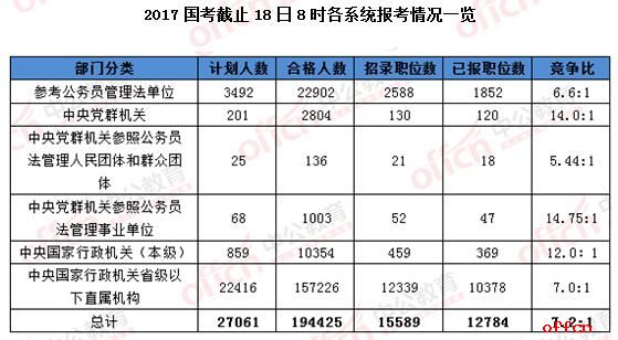 2017國考截止18日8時各系統(tǒng)報考情況一覽