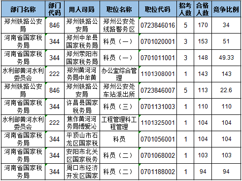 報(bào)名通過審核人數(shù)排名前列的職位主要集中在鄭州鐵路公安局、河南省國家稅務(wù)局,水利部黃河水利委員會(huì),具體信息如下: