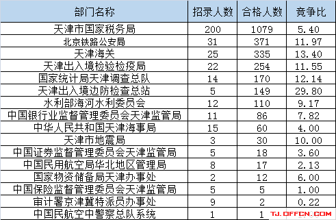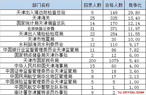 為幫助廣大考生更清晰的了解今日?qǐng)?bào)名情況,天津中公網(wǎng)校整理了審核通過(guò)人數(shù)前五位的部門(mén)以及競(jìng)爭(zhēng)比例最激烈的五大部門(mén),供廣大考生參考: