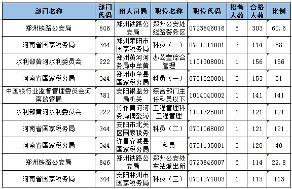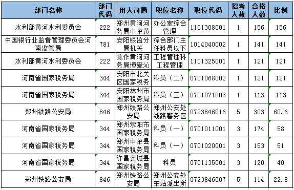 報(bào)名通過(guò)審核人數(shù)排名前列的職位主要集中在鄭州鐵路公安局、河南省國(guó)家稅務(wù)局,水利部黃河水利委員會(huì),具體信息如下: