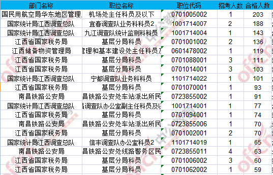 報(bào)名通過審核人數(shù)前十的職位主要集中在江西省國家稅務(wù)局、國家統(tǒng)計(jì)局江西調(diào)查總隊(duì)具體信息如下:
