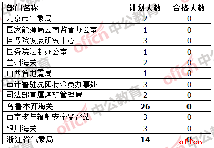 與國稅的程度形成鮮明對(duì)比的是,目前仍有12個(gè)部門“無人問津”,其中,烏魯木齊海關(guān)招錄26人、浙江省氣象局招錄14人,仍處于觀望態(tài)勢(shì)的考生可以重點(diǎn)考慮。
