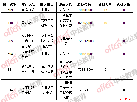 值得考生注意的是,目前仍有2082個(gè)職位無人報(bào)考,這些職位之所以受冷落基本原因有兩個(gè),一是地處偏遠(yuǎn),待遇差,發(fā)展前途不明朗,另外一個(gè)則是 “門檻高”,符合條件的考生少,沒有報(bào)考資格,只能“望崗興嘆”。以下是無人報(bào)考職位中招錄人數(shù)較多的職位: