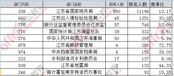 【截至19日16時】2017國考報名江蘇15094人過審 最熱職位264:1