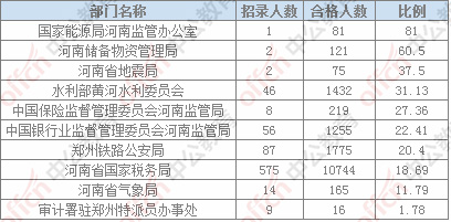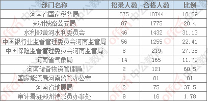 截止19日16時,通過審核人數(shù)前三位的部門依然是:河南省國家稅務局、鄭州鐵路公安局,水利部黃河水利委員會,三部門通過審核總人數(shù)13951人,占通過審核總人數(shù)的87.81%。