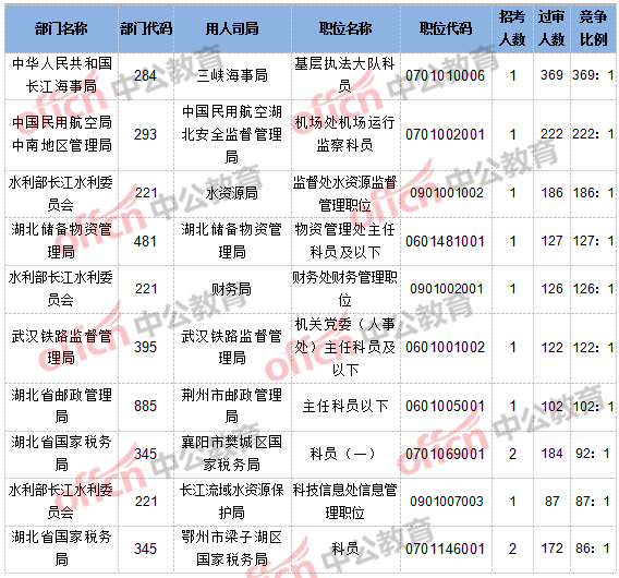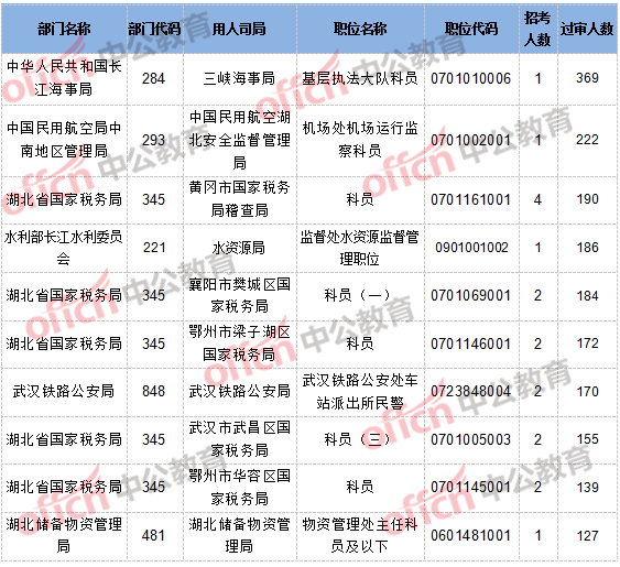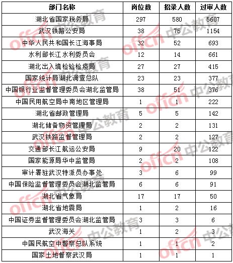 【截至19日16時(shí)】2017國(guó)考報(bào)名湖北10304人通過審核,最熱崗位369:1
