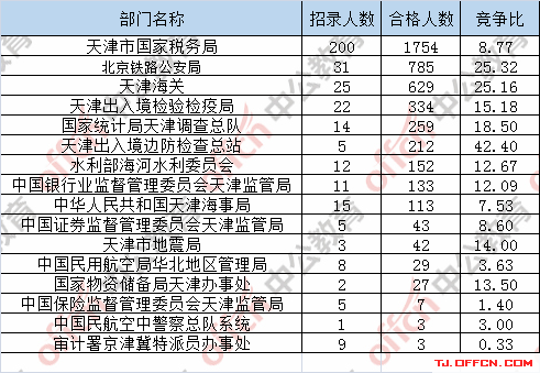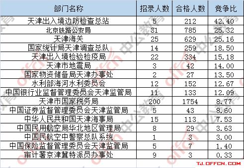 為幫助廣大考生更清晰的了解今日?qǐng)?bào)名情況,天津中公網(wǎng)校整理了審核通過(guò)人數(shù)前五位的部門(mén)以及競(jìng)爭(zhēng)比例最激烈的五大部門(mén),供廣大考生參考: