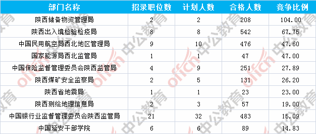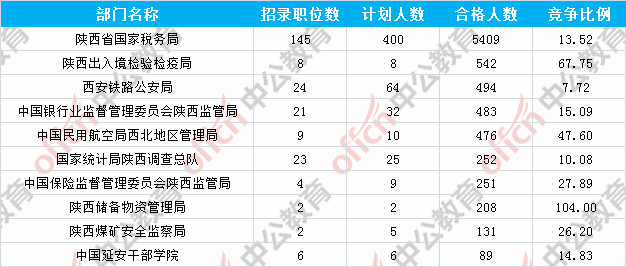 為幫助廣大考生更清晰的了解今日?qǐng)?bào)名情況,陜西中公教育整理了審核通過人數(shù)前十位的部門以及競(jìng)爭(zhēng)比例最激烈的十大部門,供廣大考生參考: