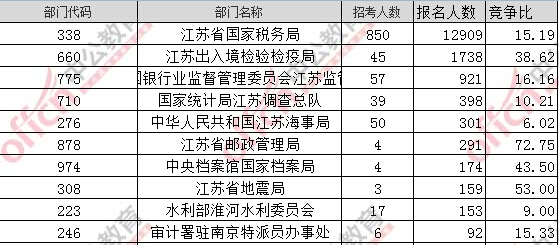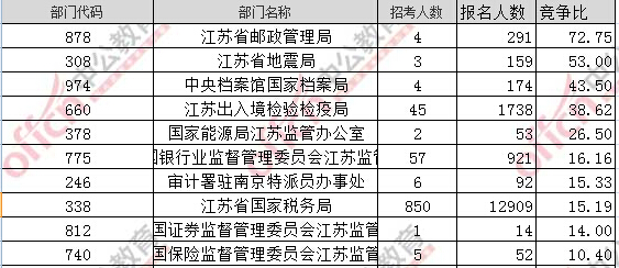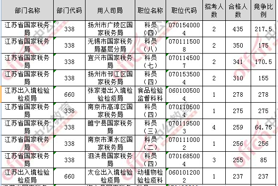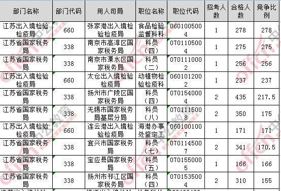 報(bào)名通過審核人數(shù)前十的職位主要集中在江蘇省國家稅務(wù)局、江蘇出入境檢驗(yàn)檢疫局,具體信息如下: