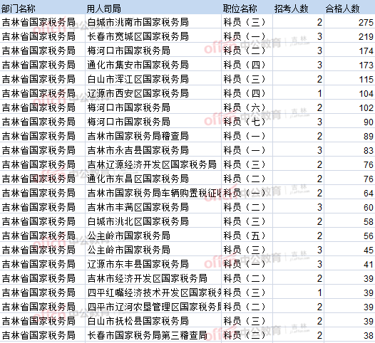 【截至20日8時】2017國考吉林各部門職位報名情況瀏覽