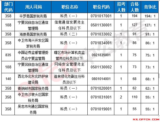 2017國(guó)考寧夏地區(qū)各部門(mén)報(bào)考情況