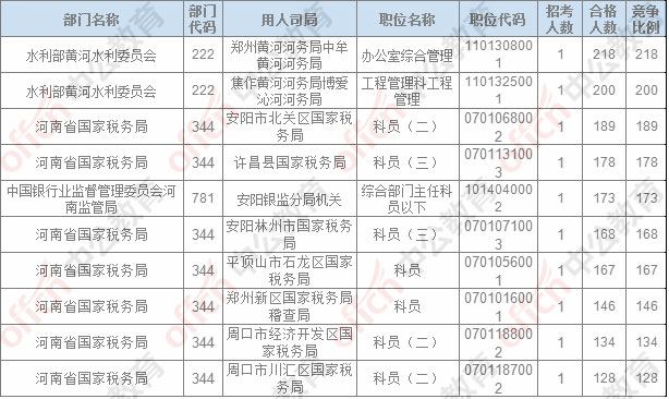 截止20日8時,招錄比例的職位為鄭州黃河河務局中牟黃河河務局辦公室綜合管理一職,招錄1人,截止20日8時通過人數(shù)為218人,自昨日16時,沒有新增報名人數(shù)。