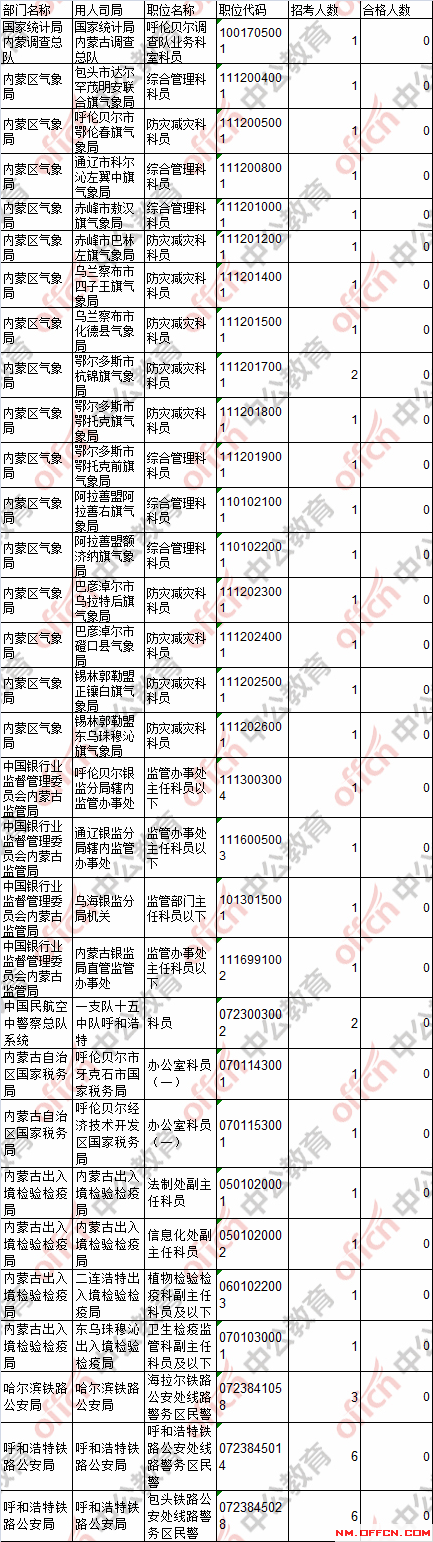 截止到20日16時(shí),工作地點(diǎn)在內(nèi)蒙古39個(gè)職位無人報(bào)考。具體職位如下: