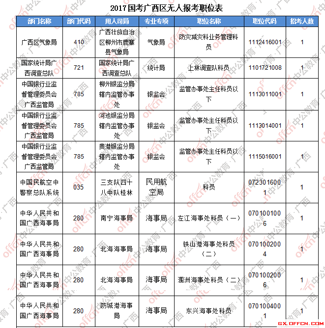 報(bào)名通過審核人數(shù)前十的職位主要集中在廣西壯族自治區(qū)國家稅務(wù)局、廣西儲(chǔ)備物資管理局等部門,具體信息如下: