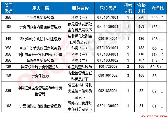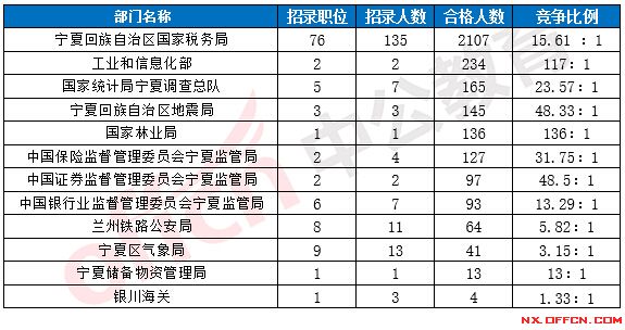 2017國(guó)考寧夏地區(qū)各部門報(bào)考情況