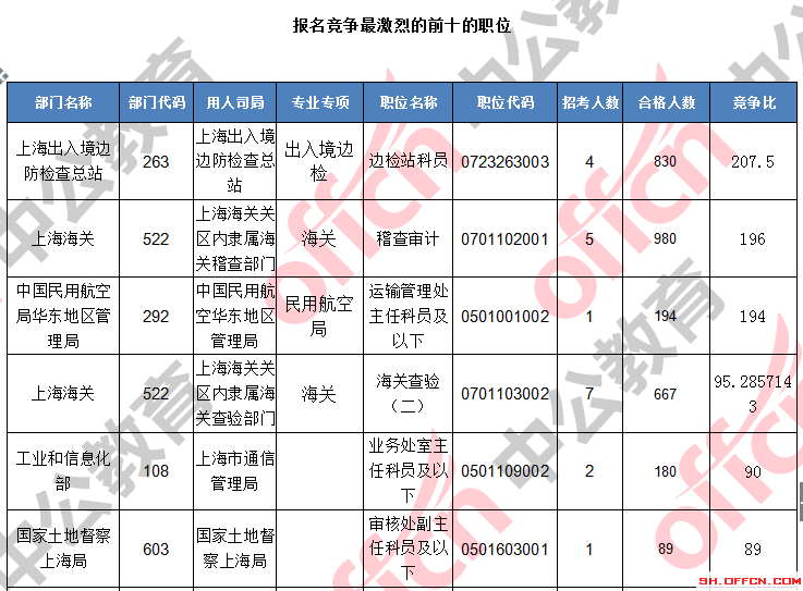 截止20日16時(shí)2017國(guó)考上海崗位無(wú)人報(bào)考匯總