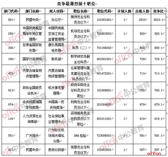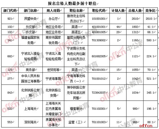 截止到10月21日8時(shí),報(bào)名人數(shù)千人的職位已增加為8個(gè)。民盟中央辦公廳(職位代碼101001001)一職已報(bào)名通過(guò)審核2610人,比昨日同期增長(zhǎng)了1000余人,領(lǐng)先地位“無(wú)可撼動(dòng)”,相較與去年同期報(bào)名人數(shù)最多職位的2471人,7個(gè)職位過(guò)千,可以看出,今年的國(guó)考熱度有增無(wú)減。