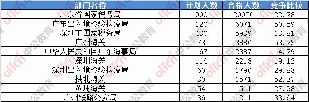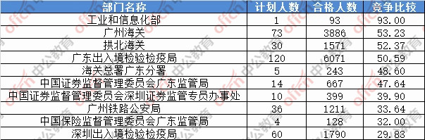 為幫助廣大考生更清晰的了解今日報名情況,廣東中公網(wǎng)校整理了審核通過人數(shù)前十位的部門以及競爭比例最激烈的十大部門,供廣大考生參考: