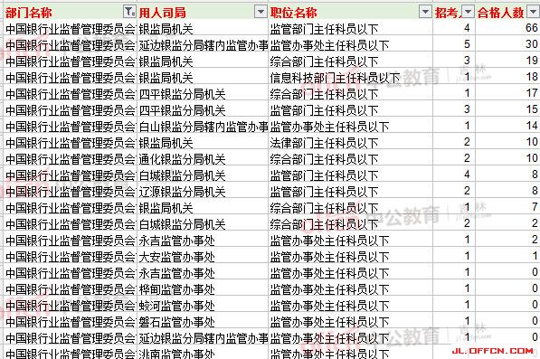 中國銀監(jiān)會吉林管理局報名人數(shù)最多前20崗位