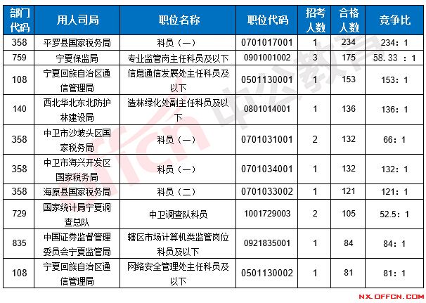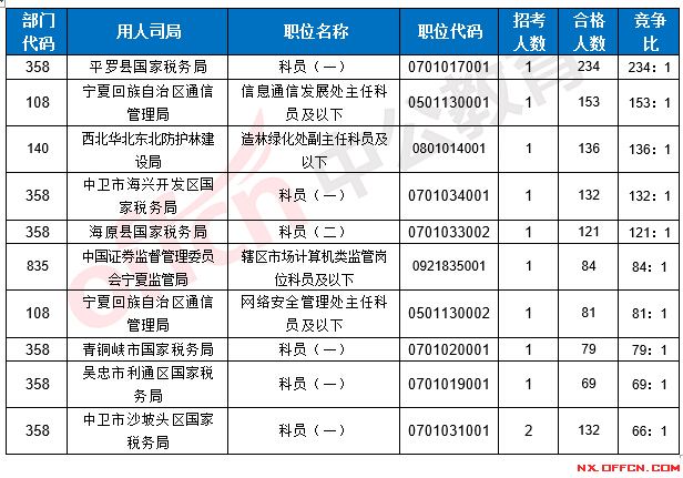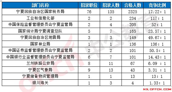 2017國(guó)考寧夏地區(qū)各部門(mén)報(bào)考情況