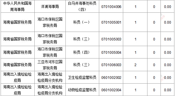 截止到21日8時(shí),各部門報(bào)名仍以國(guó)稅局和海南出入境檢驗(yàn)檢疫局為主,兩部門共報(bào)名3142人。占報(bào)名總?cè)藬?shù)的67%,相比之下,其他部門一天時(shí)間報(bào)名人數(shù)幾乎沒有增加。