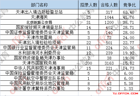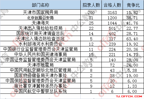 為幫助廣大考生更清晰的了解今日報名情況,天津中公網(wǎng)校整理了審核通過人數(shù)前五位的部門以及競爭比例最激烈的五大部門,供廣大考生參考: