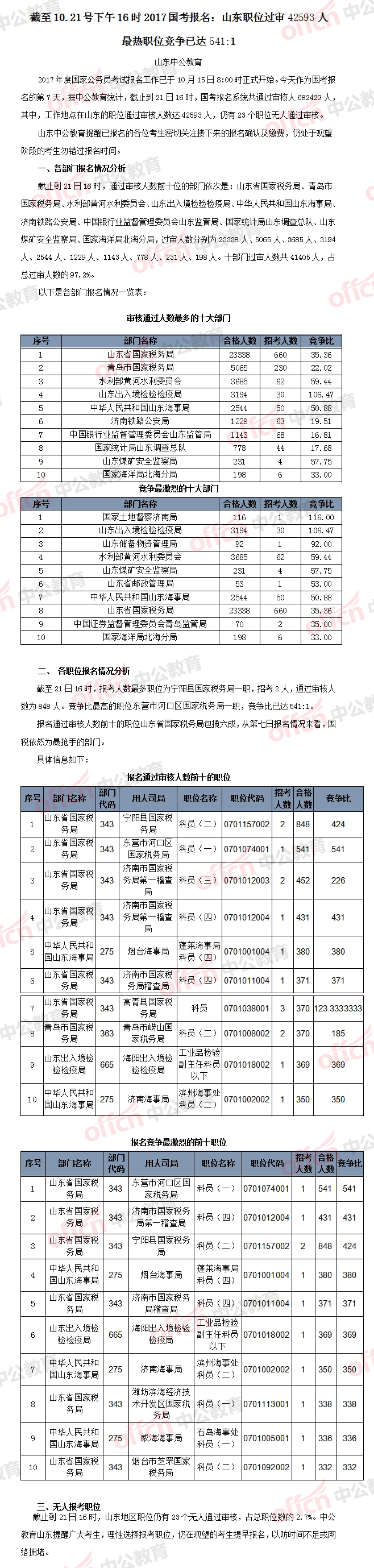 相關(guān)鏈接>>>2017國家公務(wù)員考試報名人數(shù)統(tǒng)計(山東地區(qū))【截至10月21日16時】