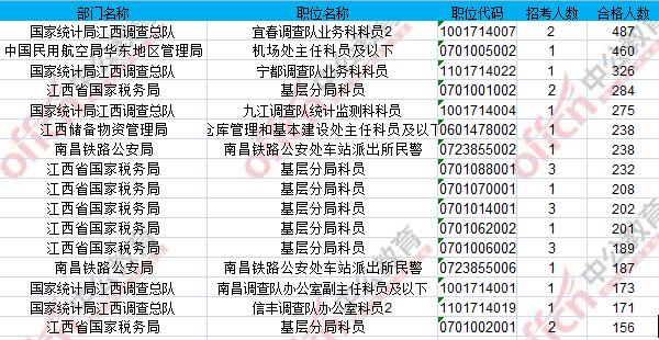報(bào)名通過(guò)審核人數(shù)前十的職位主要集中在江西省國(guó)家稅務(wù)局、國(guó)家統(tǒng)計(jì)局江西調(diào)查總隊(duì)具體信息如下: