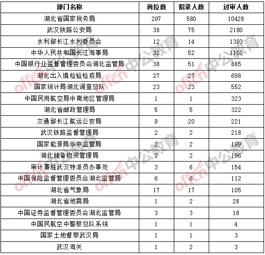 【截至21日16時】2017國考報名湖北19143人通過審核,32個職位無人通過審核