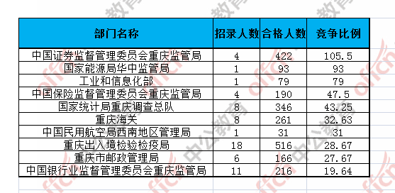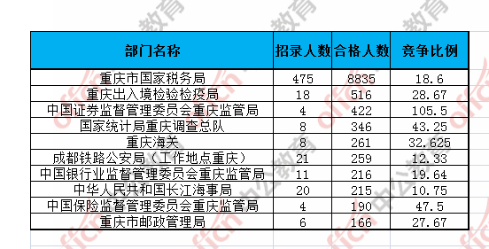 為幫助廣大考生更清晰的了解今日?qǐng)?bào)名情況,重慶中公網(wǎng)校整理了審核通過人數(shù)前十位的部門以及競(jìng)爭(zhēng)比例最激烈的十大部門,供廣大考生參考: