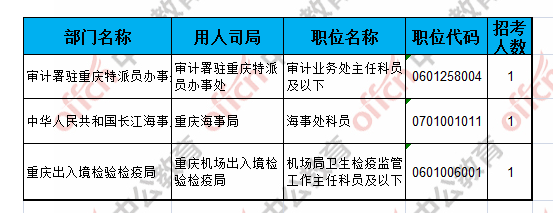 截止到21日8時(shí),工作地點(diǎn)在重慶的職位共有3個(gè)無人報(bào)考,占全部職位的1%。無人報(bào)考的職位越來越少,說明很多學(xué)員比較理性了,下面是無人報(bào)考職位一覽表,中公網(wǎng)校專家建議廣大考生多關(guān)注一些較冷職位,避免激烈競(jìng)爭(zhēng),結(jié)合自身?xiàng)l件,找到屬于自己的職位。