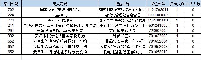 報名通過審核人數(shù)前十的職位主要集中在保稅區(qū)海關(guān)、北京鐵路公安局、天津出入境邊防檢查總站,具體信息如下: