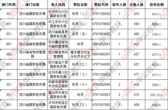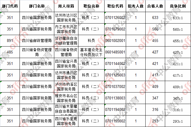 首日報(bào)名通過審核人數(shù)前十的職位主要集四川省國家稅務(wù)局等部門,具體信息如下: