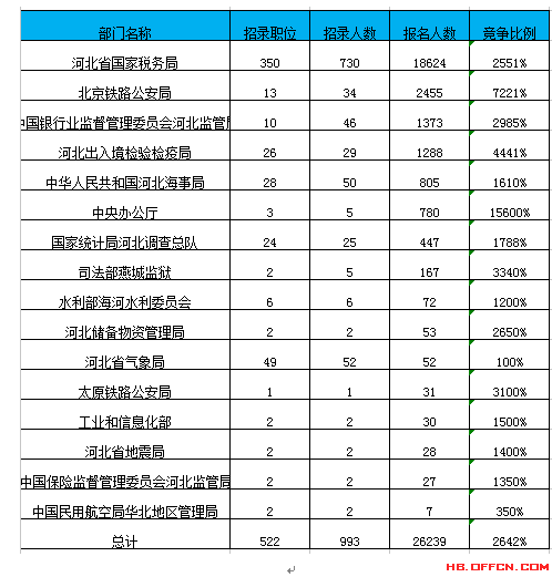 2017國考河北省地區(qū)所有職位報(bào)名情況下載表格查看: