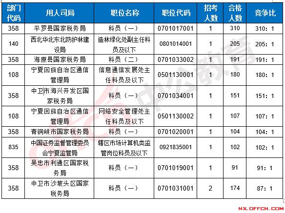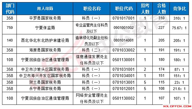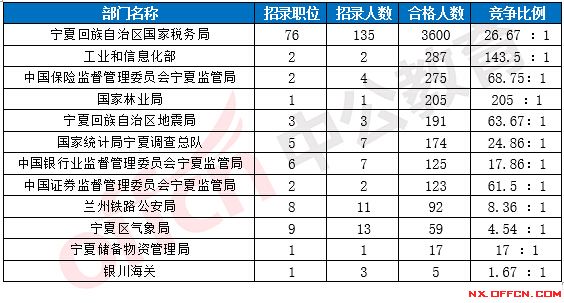 2017國(guó)考寧夏地區(qū)各部門報(bào)考情況
