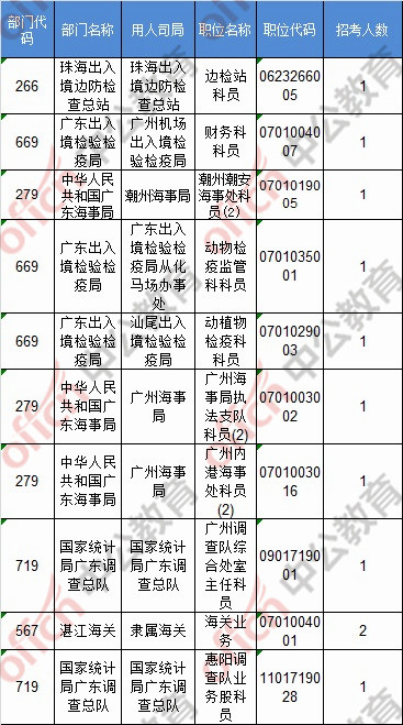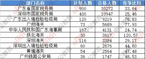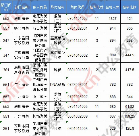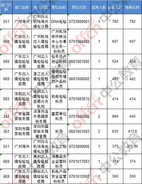 報(bào)名通過(guò)審核人數(shù)前十的職位主要集中在深圳海關(guān)、拱北海關(guān)、廣東省國(guó)家稅務(wù)局,具體信息如下: