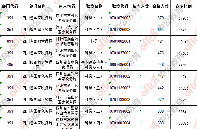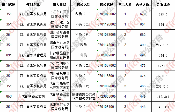 首日報名通過審核人數(shù)前十的職位主要集四川省國家稅務局等部門,具體信息如下: