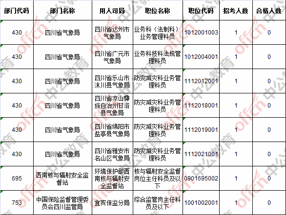 截止到23日16時,工作地點在四川的職位仍有8個無人報考,四川中公網(wǎng)校專家建議廣大考生多關注一些較冷職位,避免激烈競爭,結合自身條件,找到屬于自己的職位。