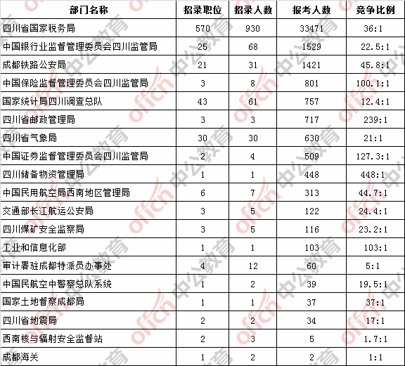 為幫助廣大考生更清晰的了解今日報名情況,四川中公網(wǎng)校整理了已審核通過人數(shù)的部門,此數(shù)據(jù)供廣大考生參考: