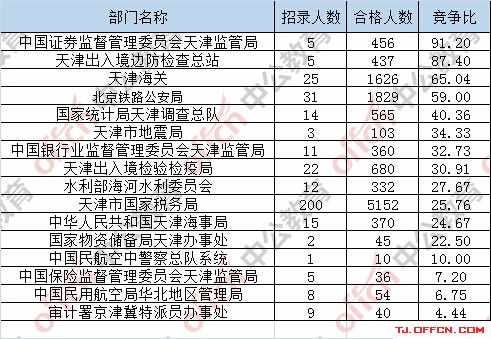 為幫助廣大考生更清晰的了解今日?qǐng)?bào)名情況,天津中公網(wǎng)校整理了審核通過(guò)人數(shù)前五位的部門以及競(jìng)爭(zhēng)比例最激烈的五大部門,供廣大考生參考: