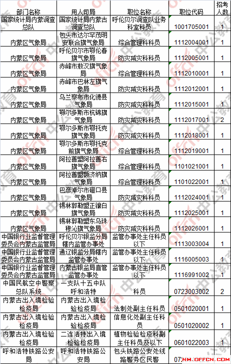 截止到23日16時(shí),工作地點(diǎn)在內(nèi)蒙古22個(gè)職位無(wú)人報(bào)考。具體職位如下: