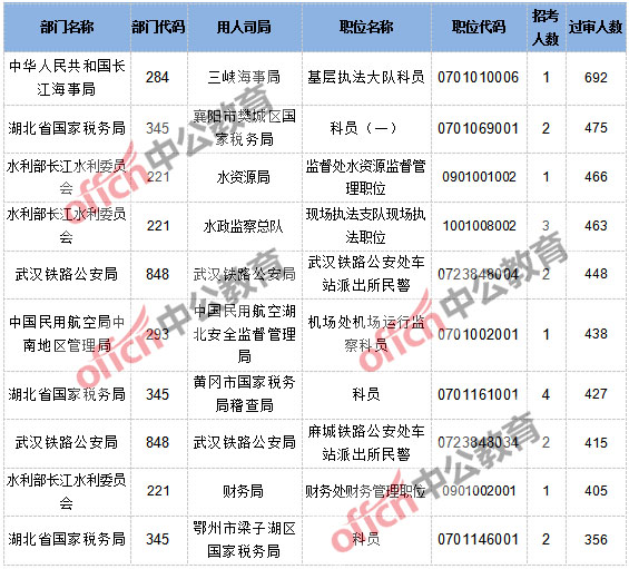 2017國家公務員考試湖北地區(qū)無人通過審核職位(23日16時)